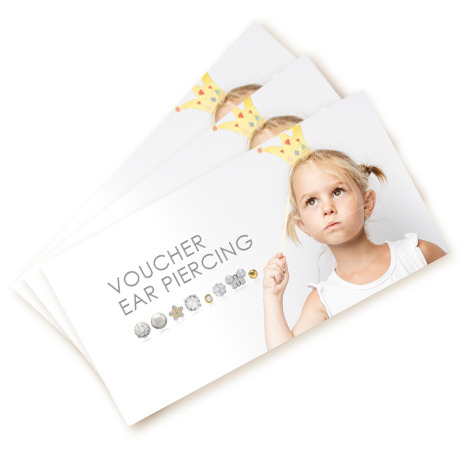 - Buy a gift voucher from your STUDEX partner for ear piercing with real gold earrings. At the same time, you can make an appointment for ear piercing.