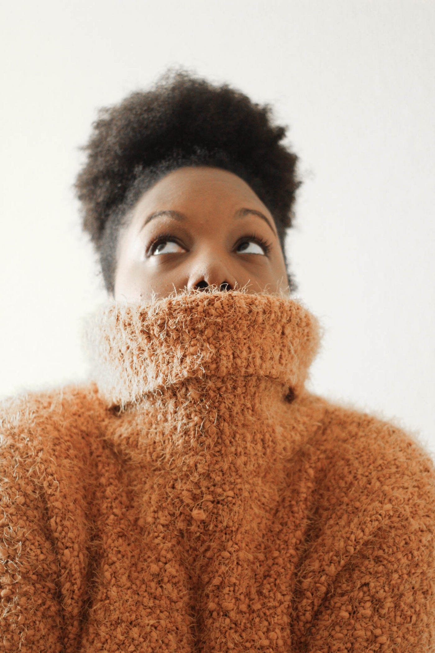 - Put your earrings or studs on after the sweater, so they don’t get caught.
